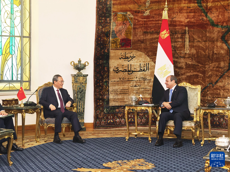 当地时间7月10日,国务院总理李强在开罗会见埃及总统塞西。