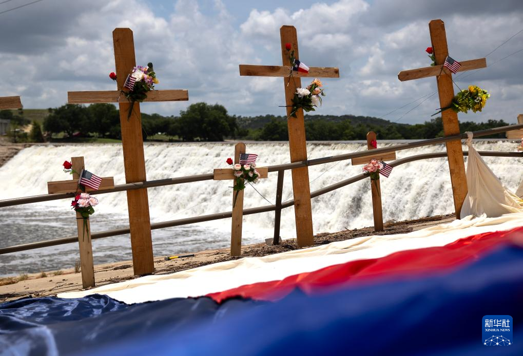 7月12日,悼念洪灾遇难者的十字架竖立在美国得克萨斯州瓜达卢普河岸边。