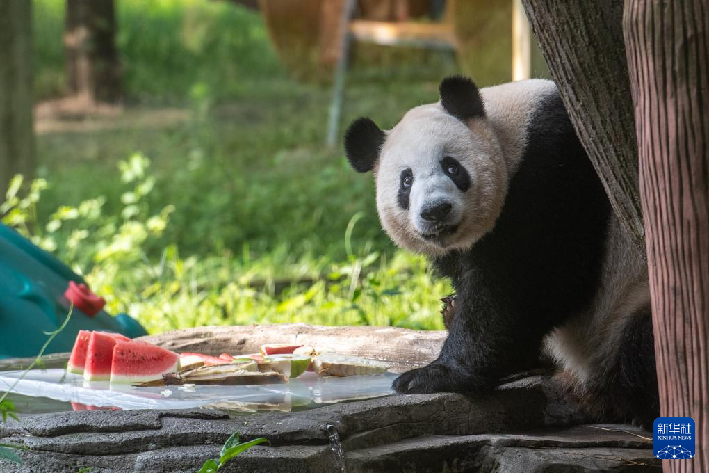 近日,重庆高温天气持续,重庆动物园通过给动物泡冰水、吹空调、喂西瓜等多种方式,让动物安然度夏。动物园还专门针对高温天气调整饲料结构,不仅准备了西瓜、黄瓜等富含水分与维生素的果蔬,还提供绿豆汤供动物饮用。