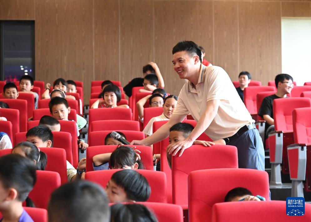 7月17日,胡廷枫与小朋友开展暑期安全教育问答互动。
