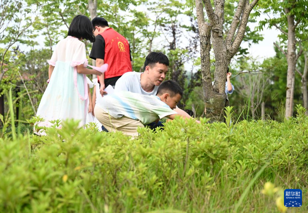 7月17日,胡廷枫和返乡大学生志愿者带领“善课堂”公益暑托班的孩子们在屏南县东湖公园开展昆虫科普知识小课堂活动。