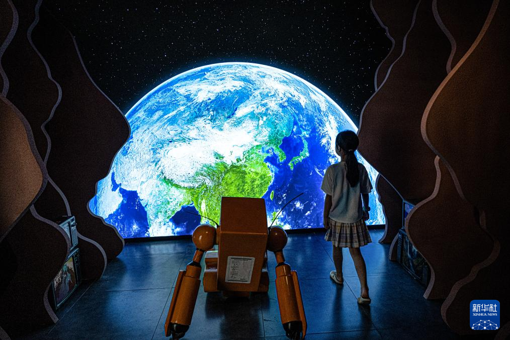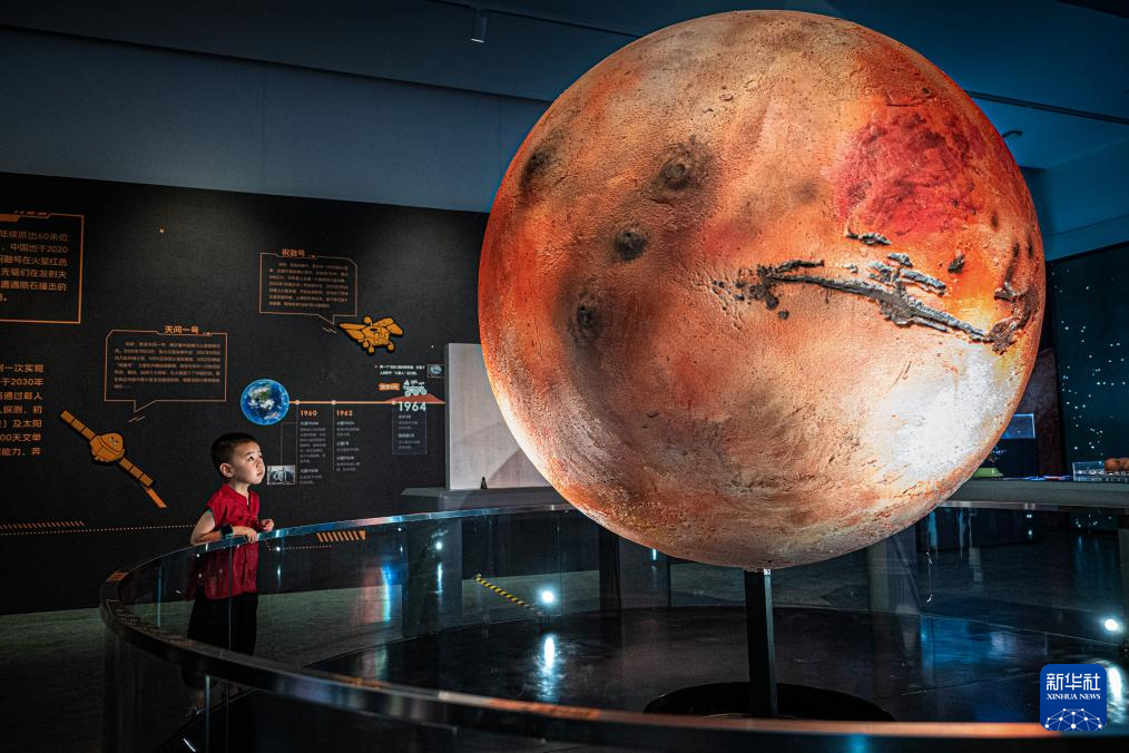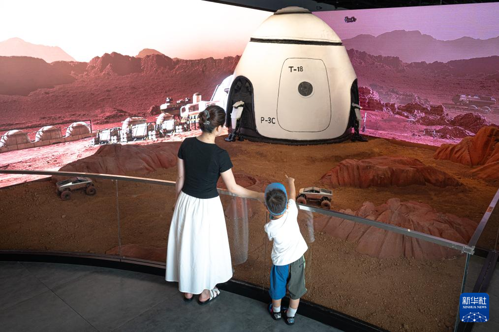 7月18日,小朋友在“走!去建设火星”硬科幻行星科学体验展上参观。