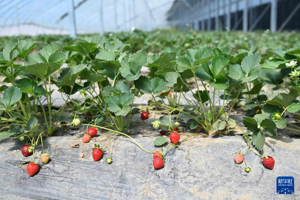 这是西藏扎囊县绿之源现代农业科技股份有限公司大棚中种植的有机草莓(7月19日摄)。