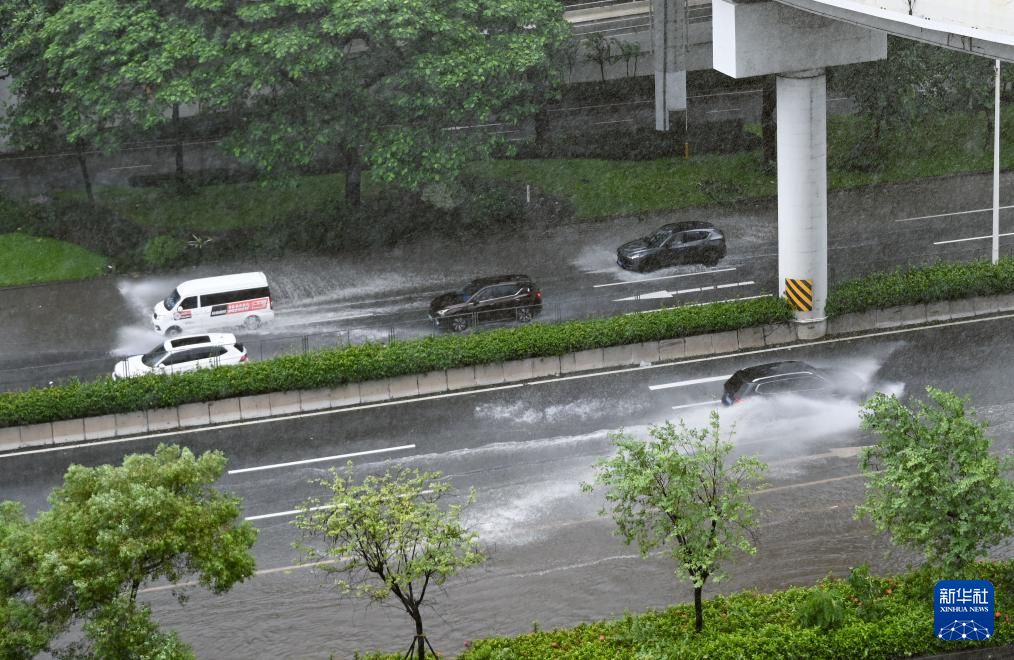 7月20日,在广东深圳,车辆在大雨中行驶。