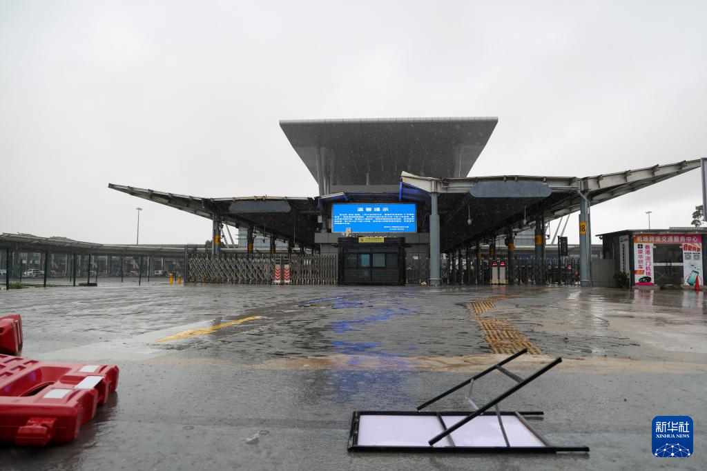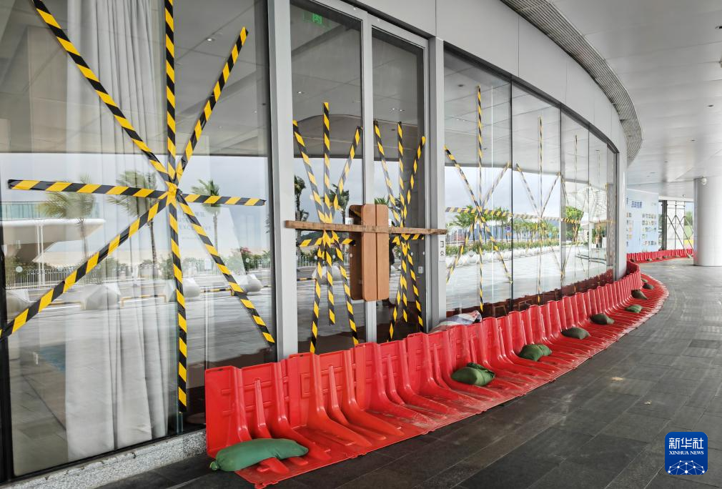 7月20日,在广东省珠海市的一处商场,玻璃门窗贴上了“米”字防风条。