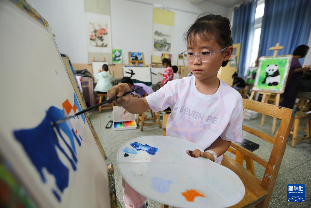 7月25日,学生在甘肃省定西市安定区青少年学生校外活动中心学习绘画。
