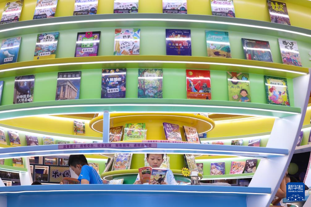 7月25日,小朋友们在河北省石家庄书城内读书。