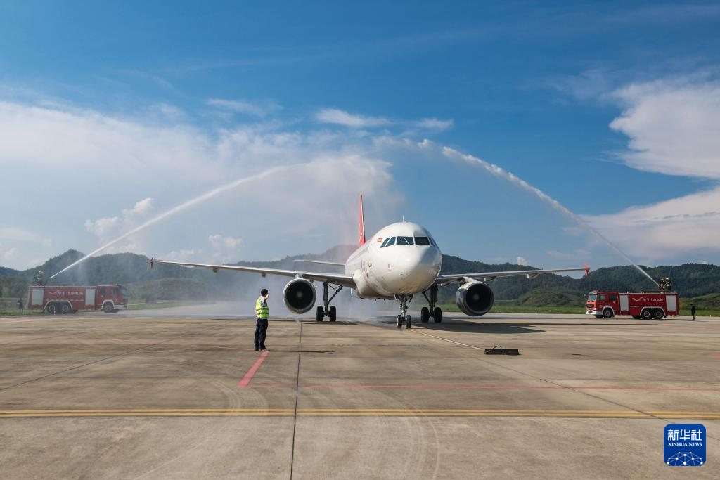 7月29日,北部湾航空GX8805次航班在毕节飞雄机场接受“水门仪式”欢迎。