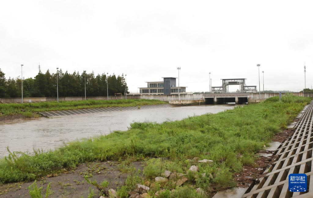 7月30日,上海奉贤区南门港水闸开闸放水,缓解城区排水压力。