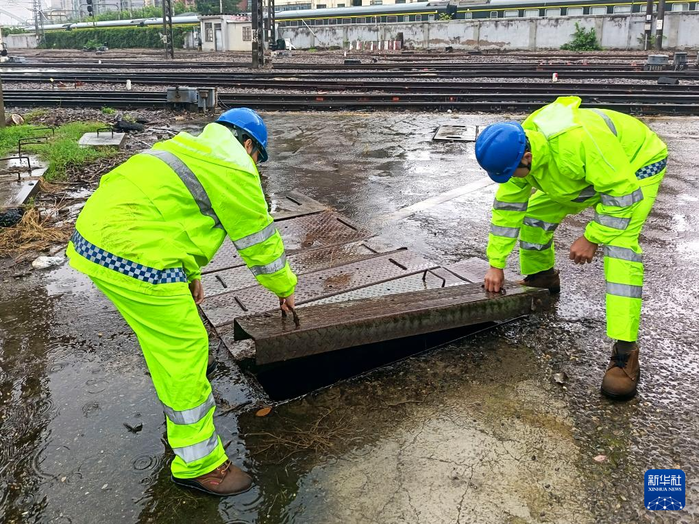 7月30日,上海机辆段设备车间工作人员在巡查防汛设备设施。