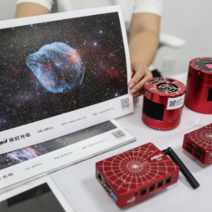 7月31日,工作人员在首届全国天文公众科学大会活动现场展示使用天文摄影机拍摄的照片。
