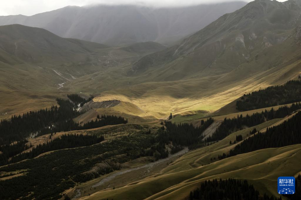位于新疆塔城地区乌苏市的古尔图南山景区,是集草原、原始森林和牧区文化体验为一体的自然景观。