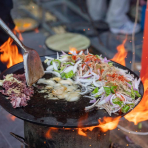 8月2日晚,甘肃省张掖市山丹县第三届炒拨拉美食节开幕。炒拨拉是山丹县的代表性地方小吃,用羊内脏搭配洋葱、青红椒等,在铸铁鏊子上用柴火或煤炭猛火爆炒而成,是张掖市级非遗项目。美食节期间还将举行非遗展演、特产展销、文旅推介等活动。