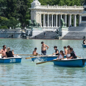 8月4日,人们在西班牙马德里的丽池公园划船。
