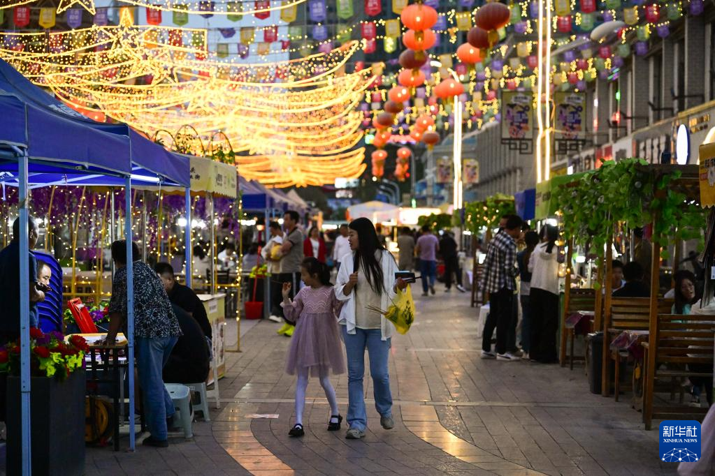 7月2日,市民在青海格尔木的“旱码头”夜市逛街。