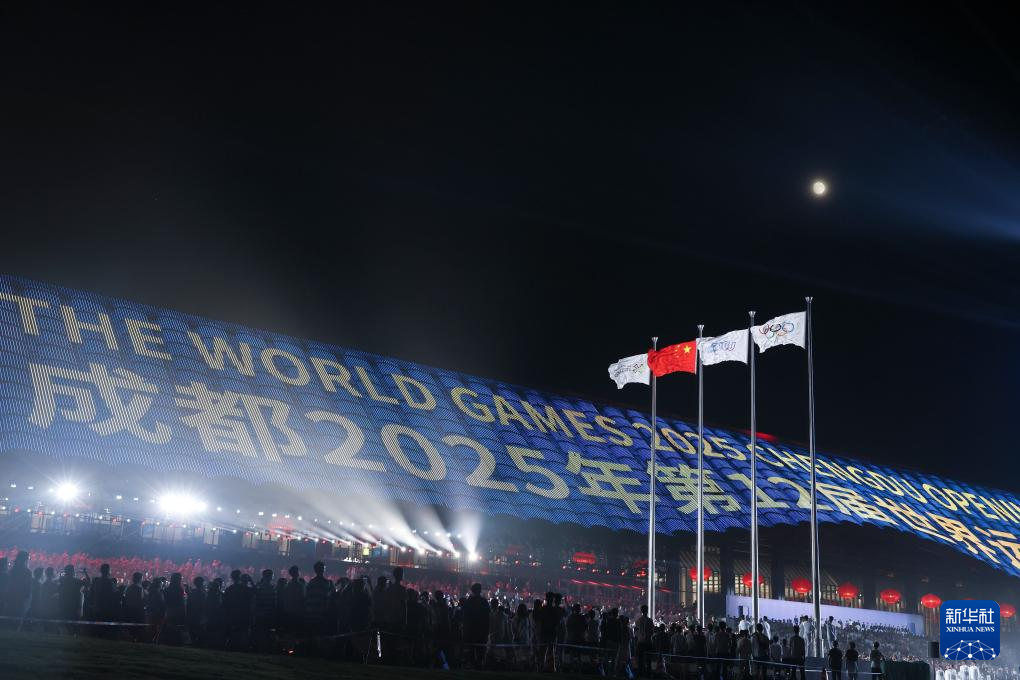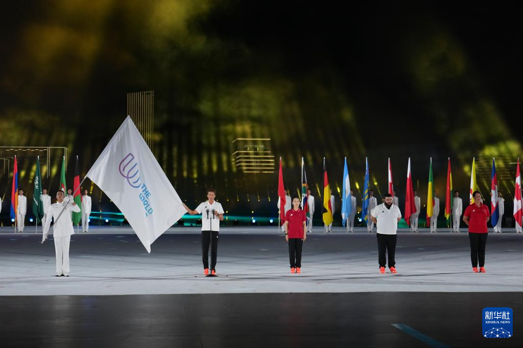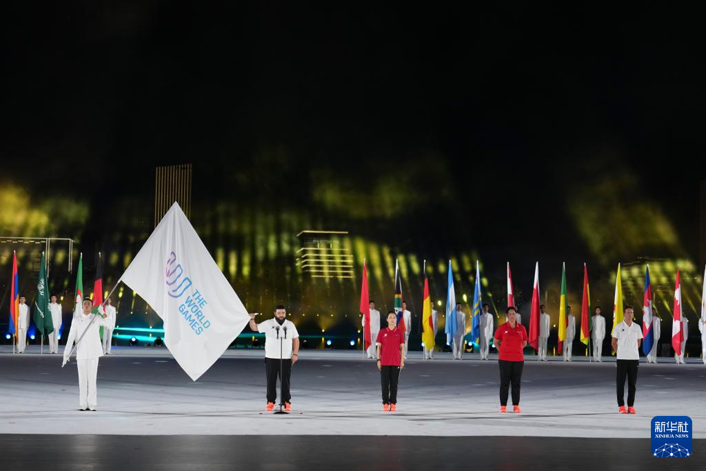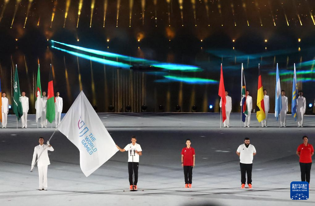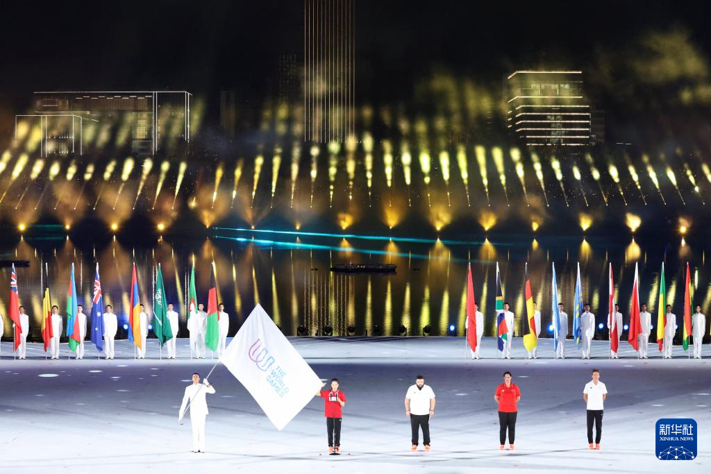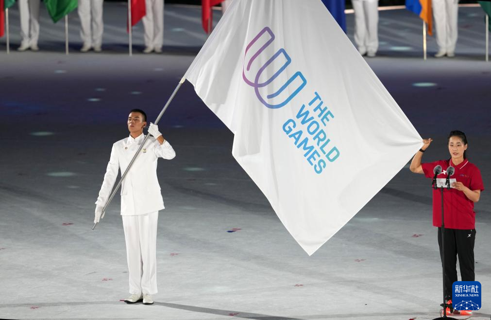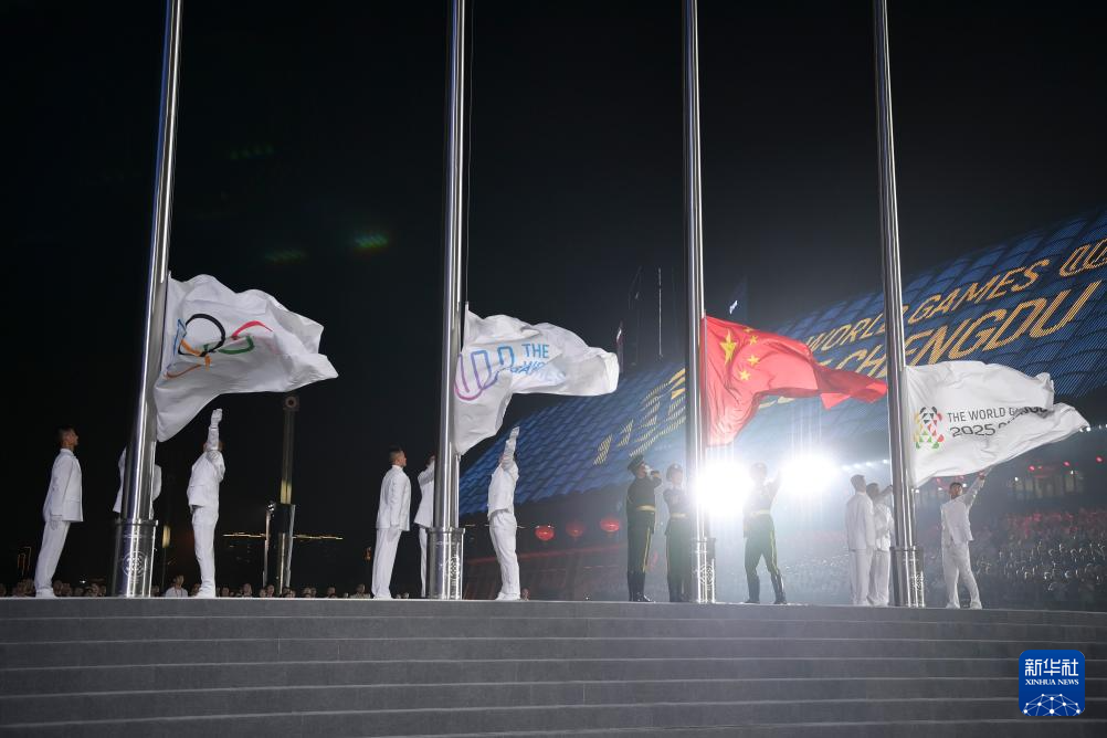8月7日,中华人民共和国国旗、国际世界运动会协会会旗、国际奥林匹克委员会会旗、成都世运会组委会会旗在开幕式上升起。