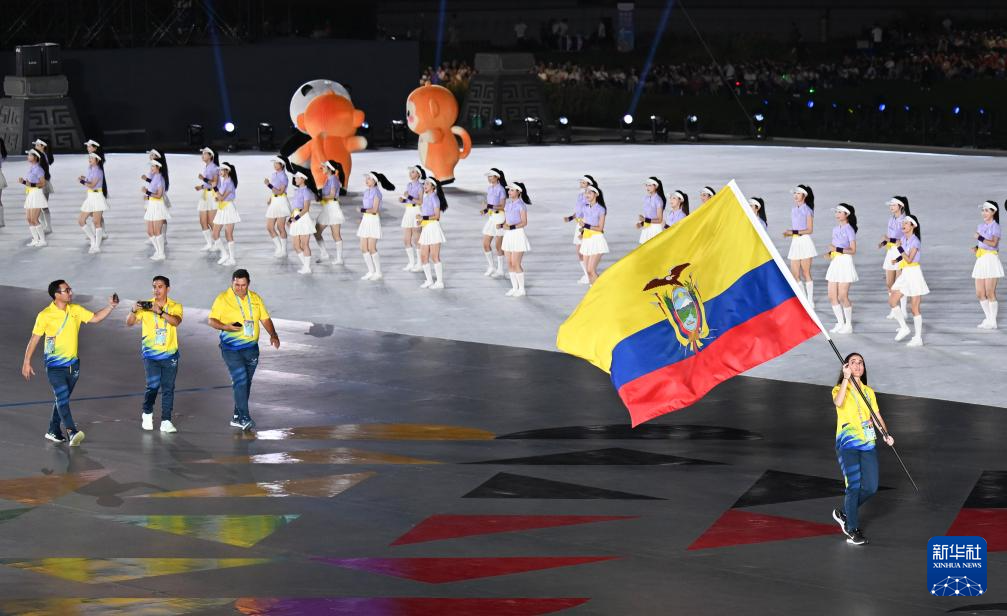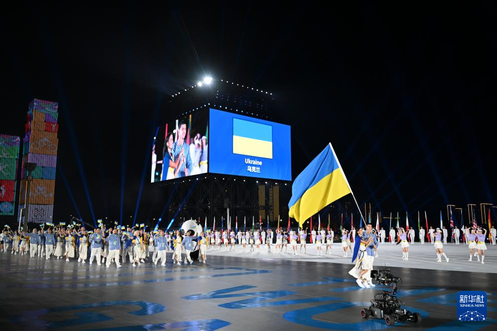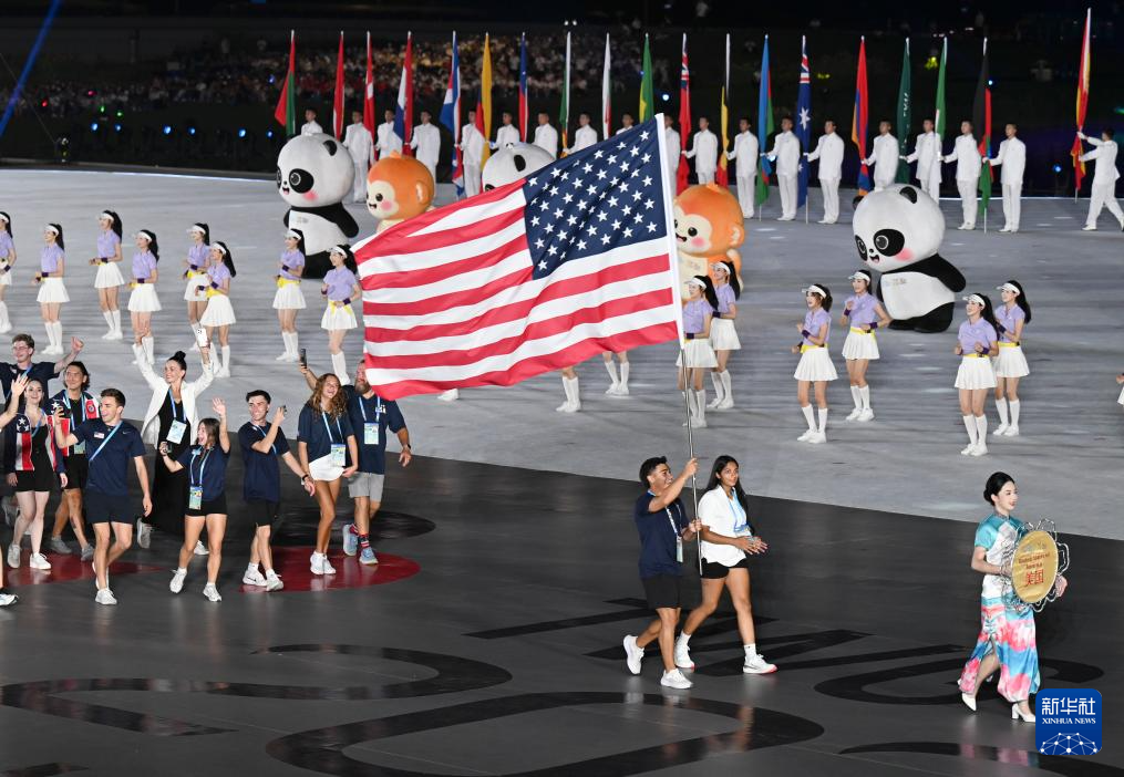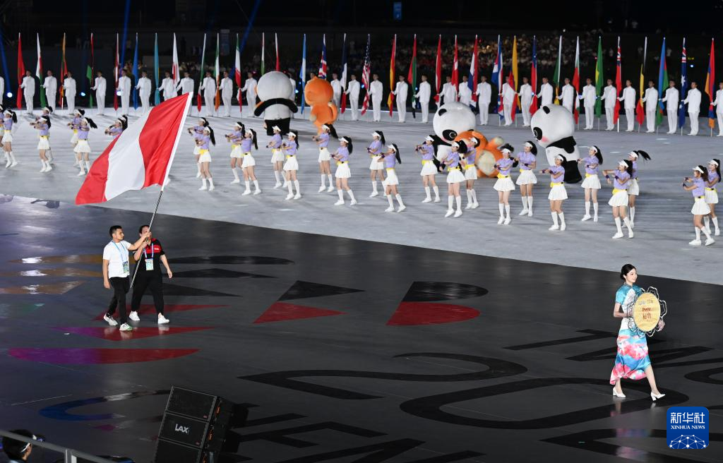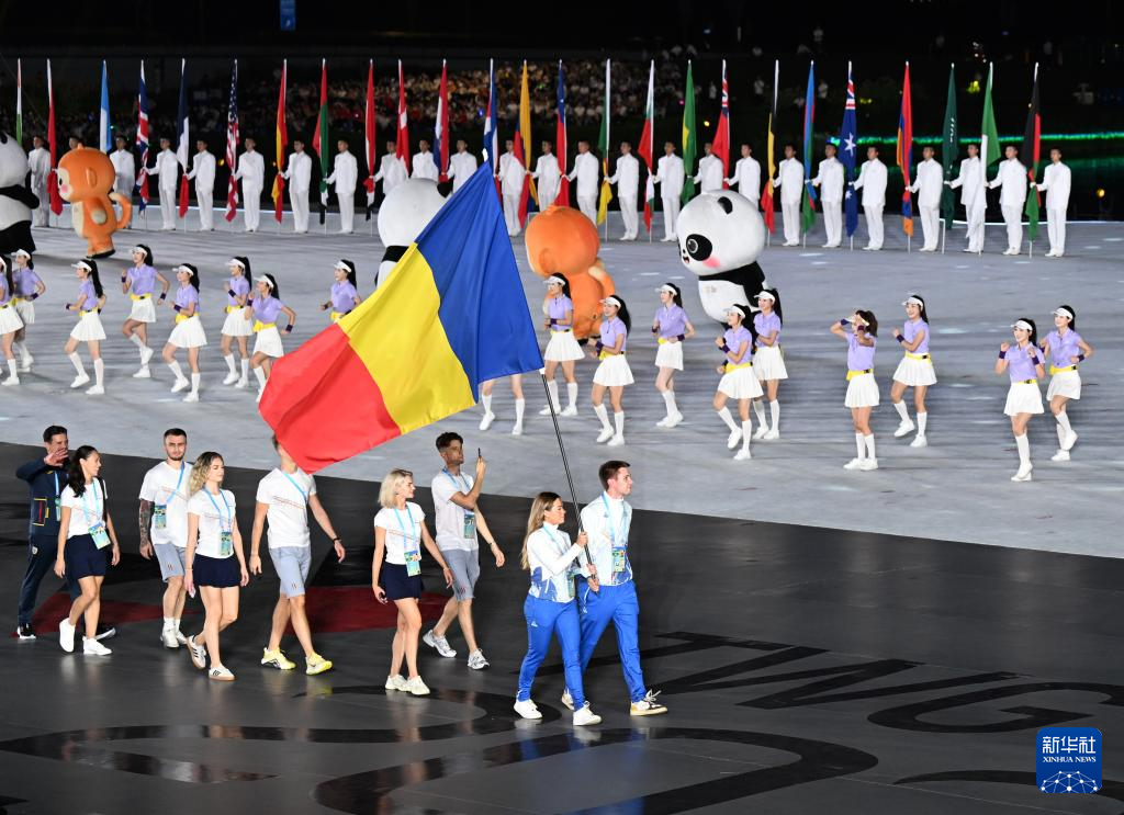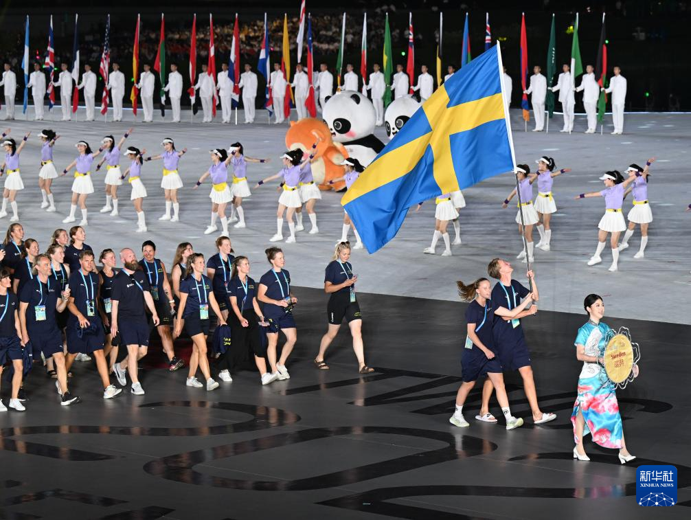 8月7日,中华人民共和国国旗、国际世界运动会协会会旗、国际奥林匹克委员会会旗、成都世运会组委会会旗在开幕式上升起。