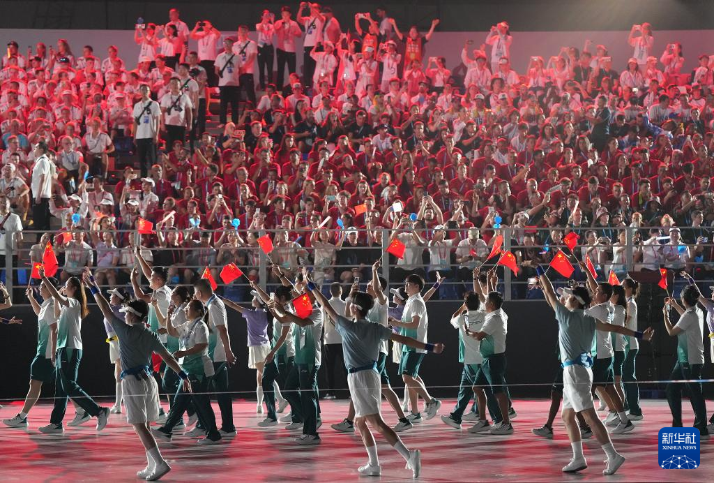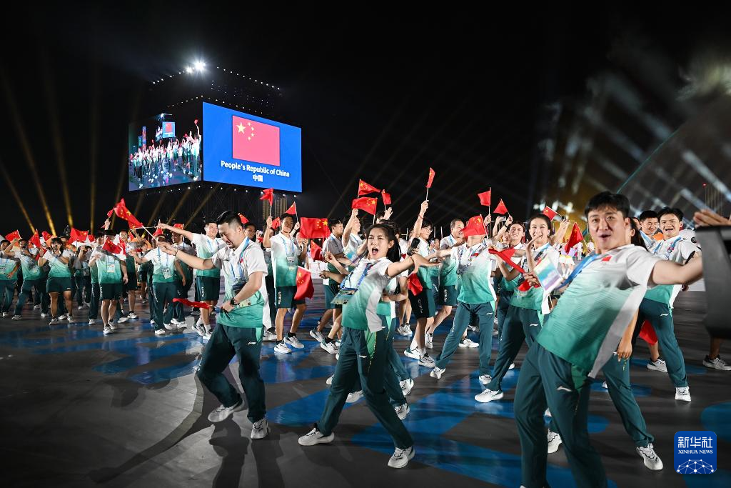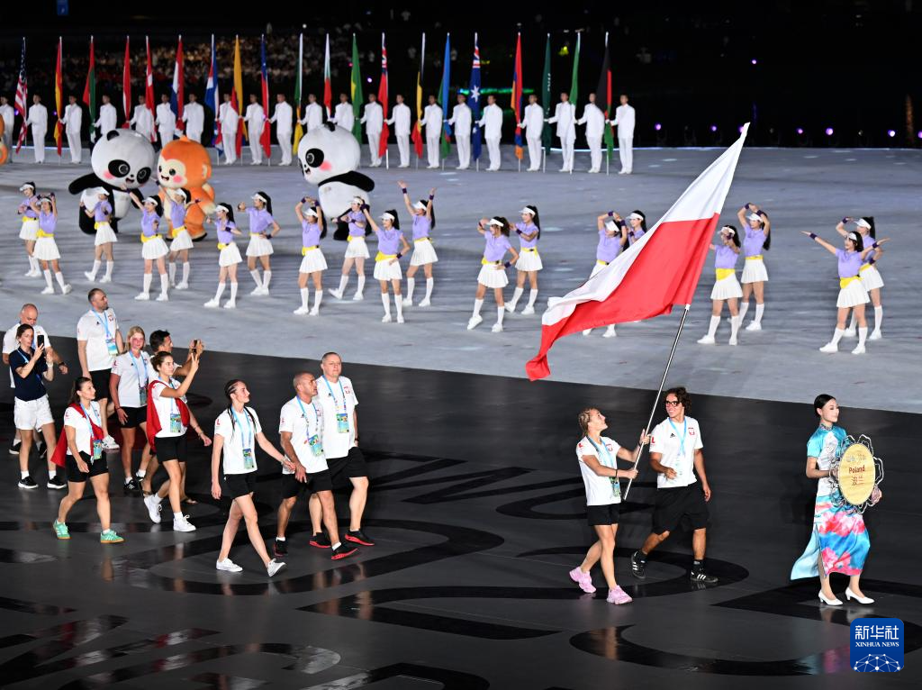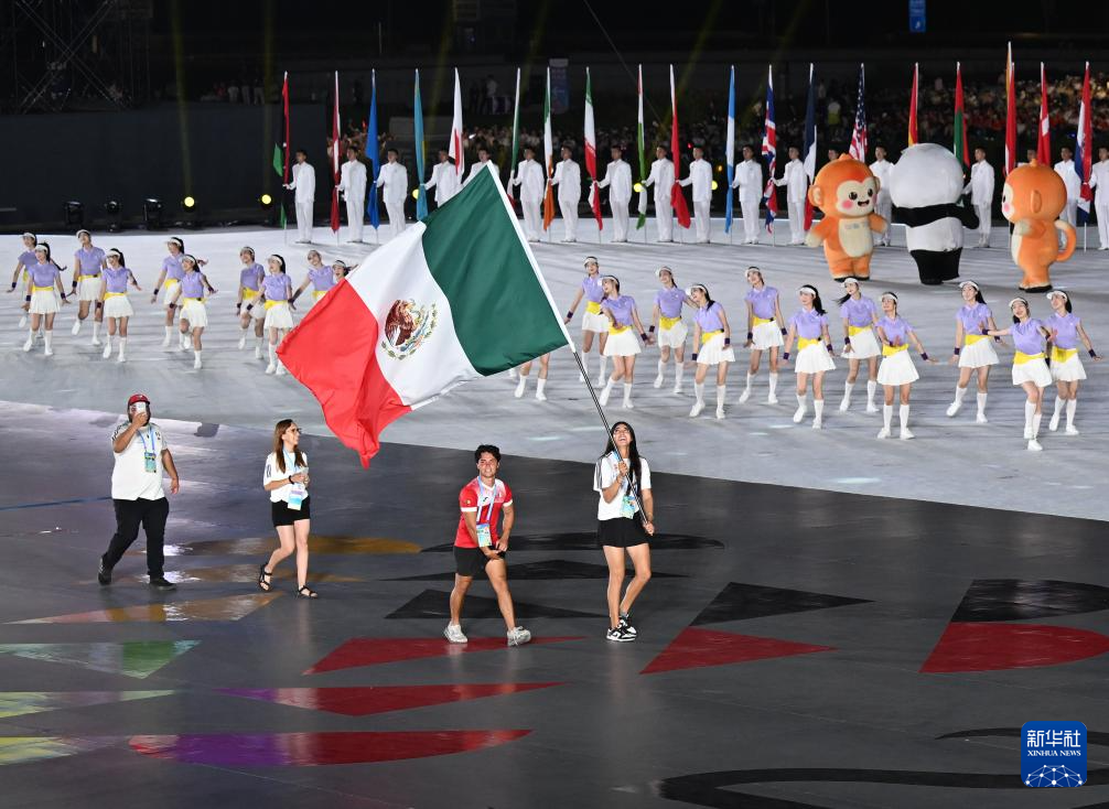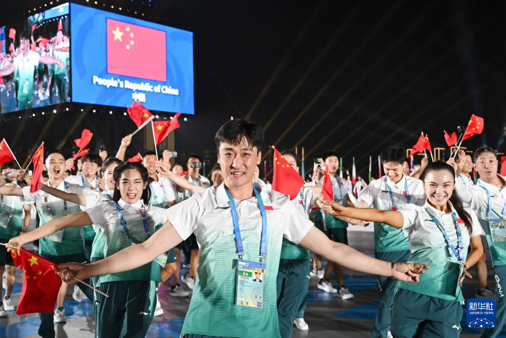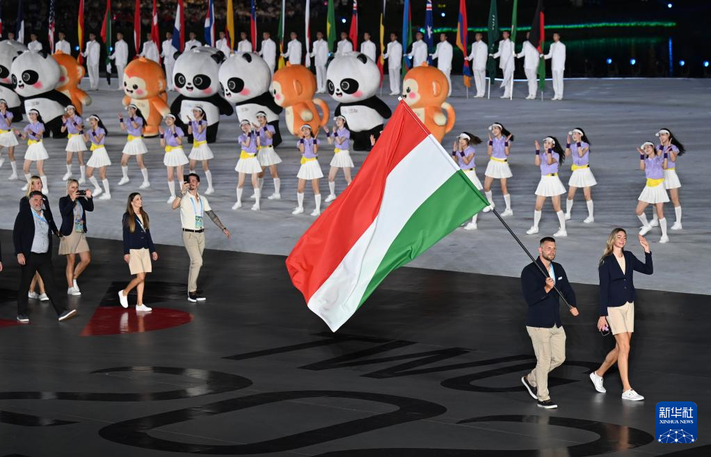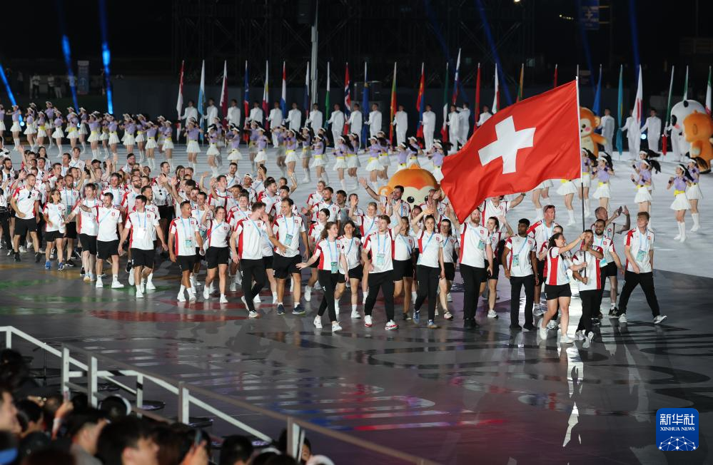 8月7日,中华人民共和国国旗、国际世界运动会协会会旗、国际奥林匹克委员会会旗、成都世运会组委会会旗在开幕式上升起。