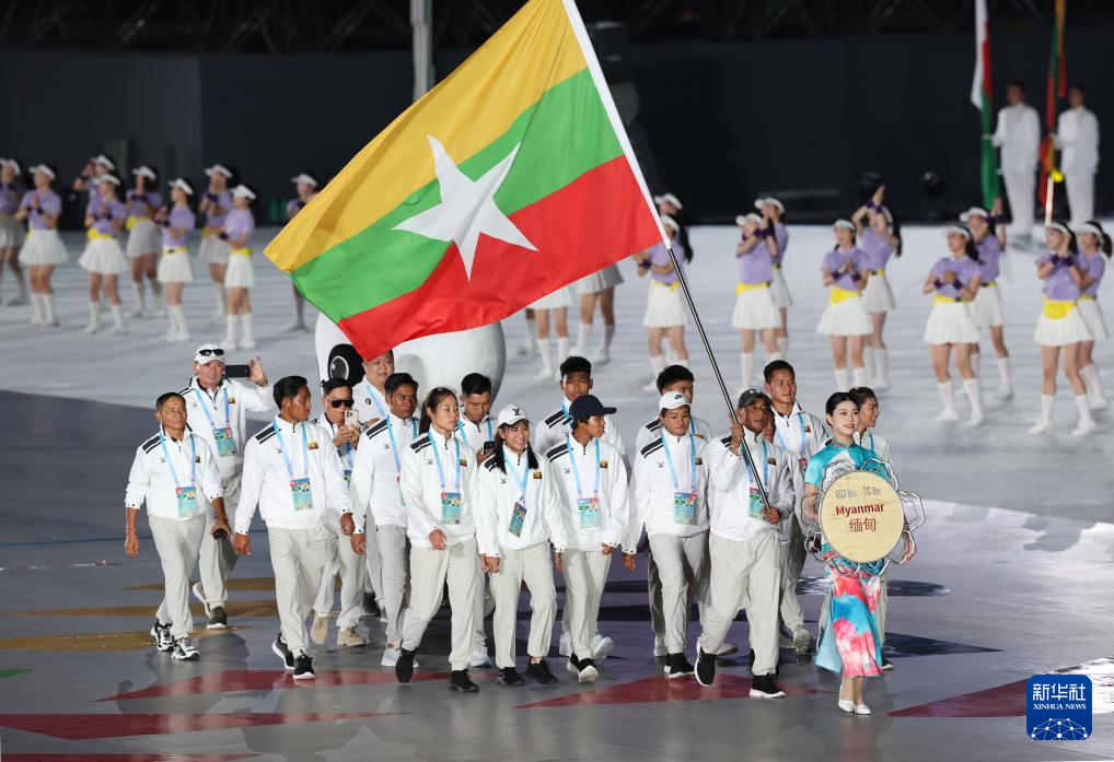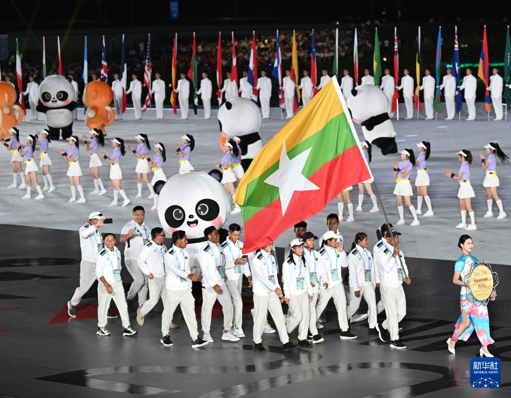 8月7日,缅甸体育代表团在开幕式上入场。