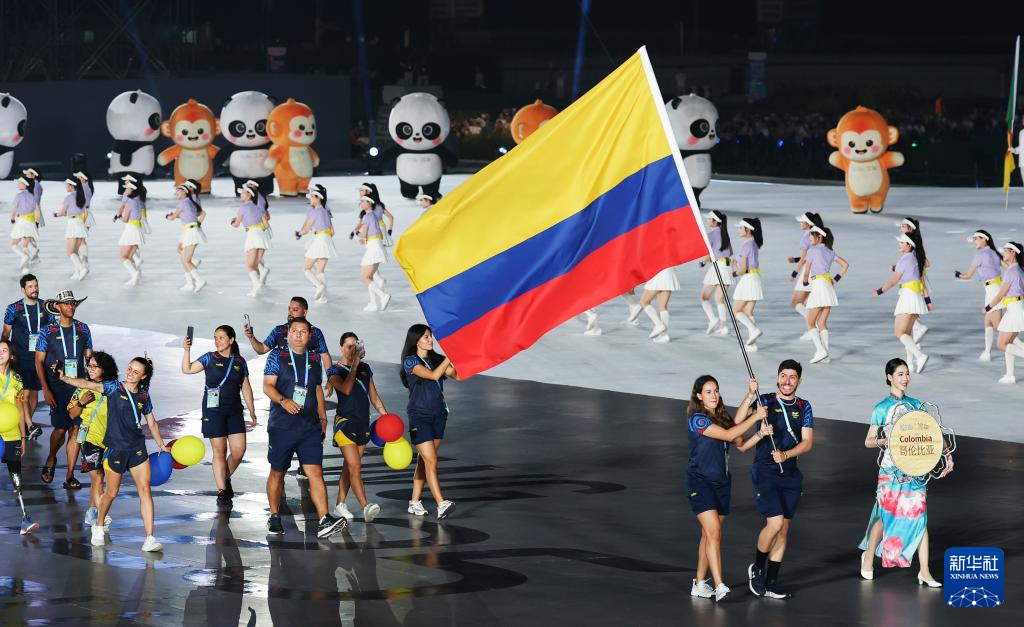 8月7日,哥伦比亚体育代表团成员在开幕式上。