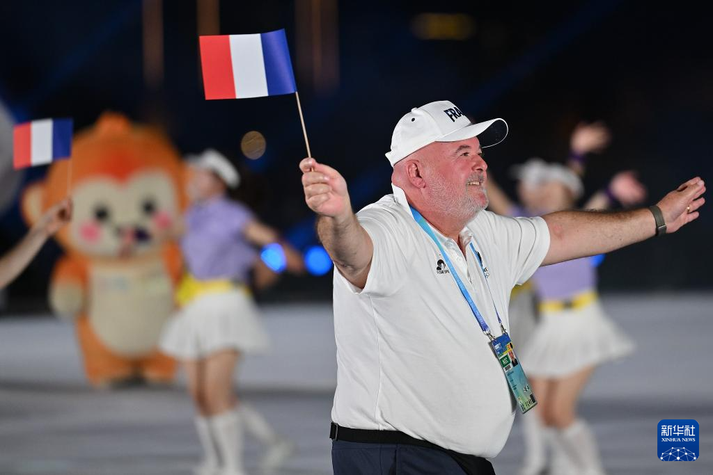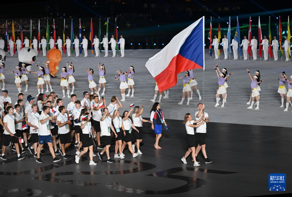 8月7日,成都世运会组委会会旗在开幕式上入场。