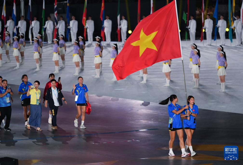 8月7日,越南体育代表团在开幕式上入场。