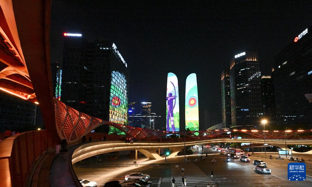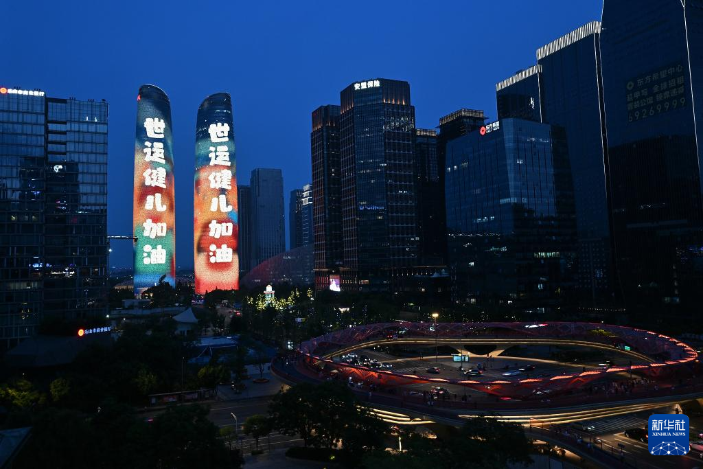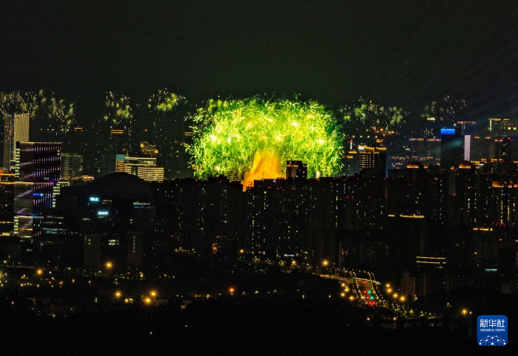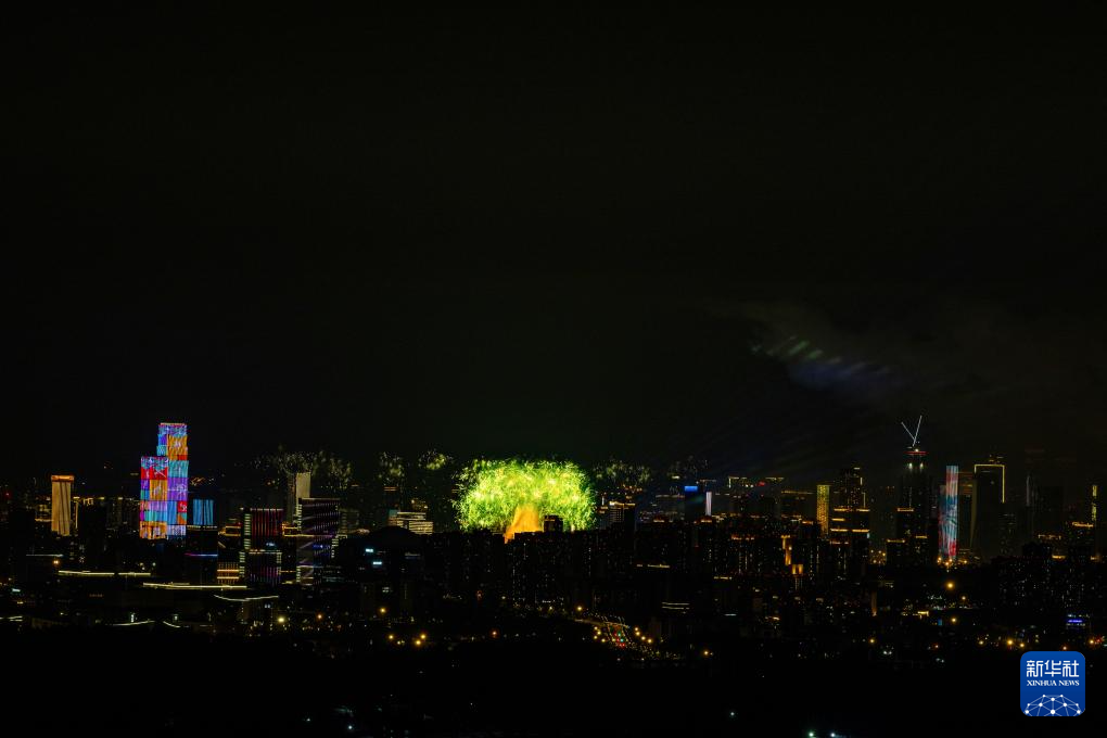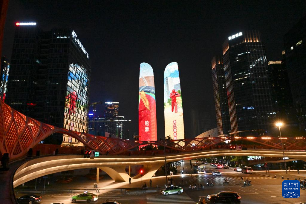 这是8月7日拍摄的成都双子塔灯光秀。