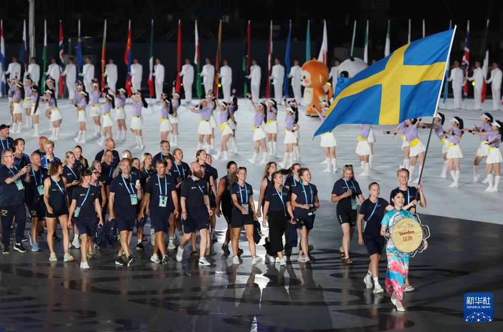 8月7日,瑞典体育代表团在开幕式上入场。