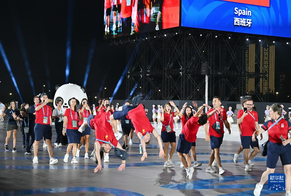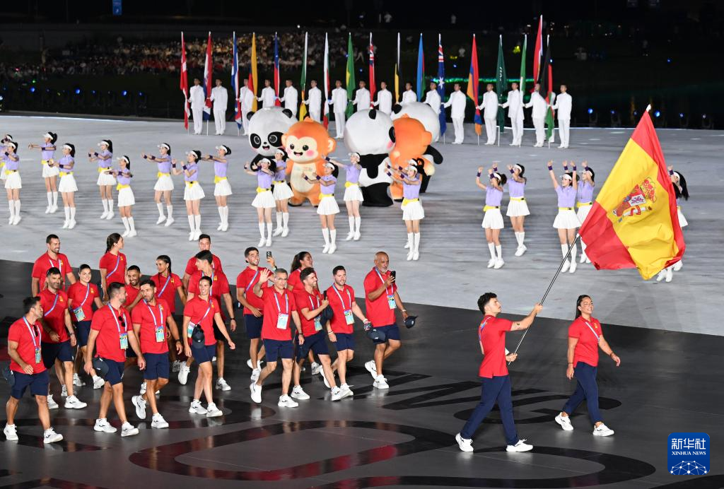 8月7日,西班牙体育代表团成员在开幕式上。