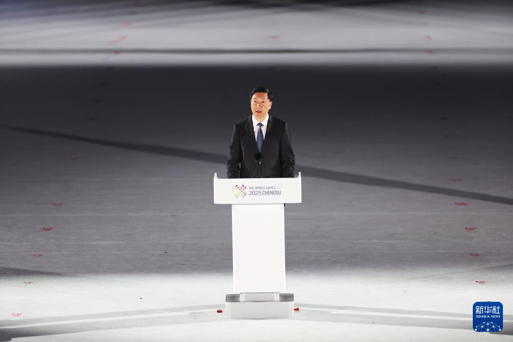8月7日,成都2025年第12届世界运动会组委会主席高志丹在开幕式上致辞。