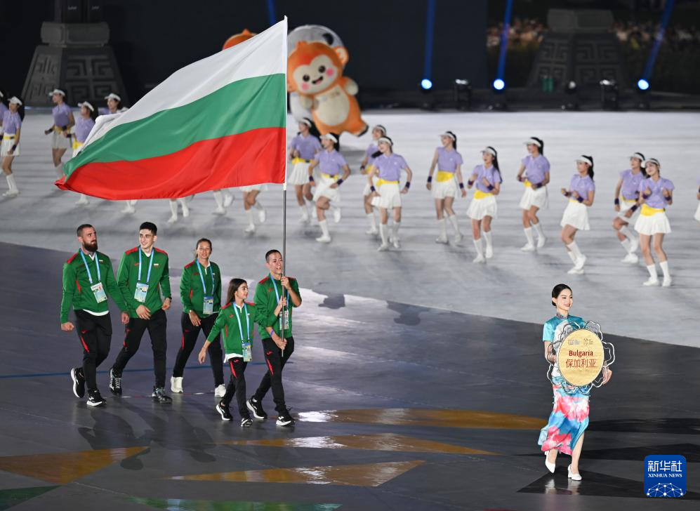 8月7日,保加利亚体育代表团在开幕式上入场。