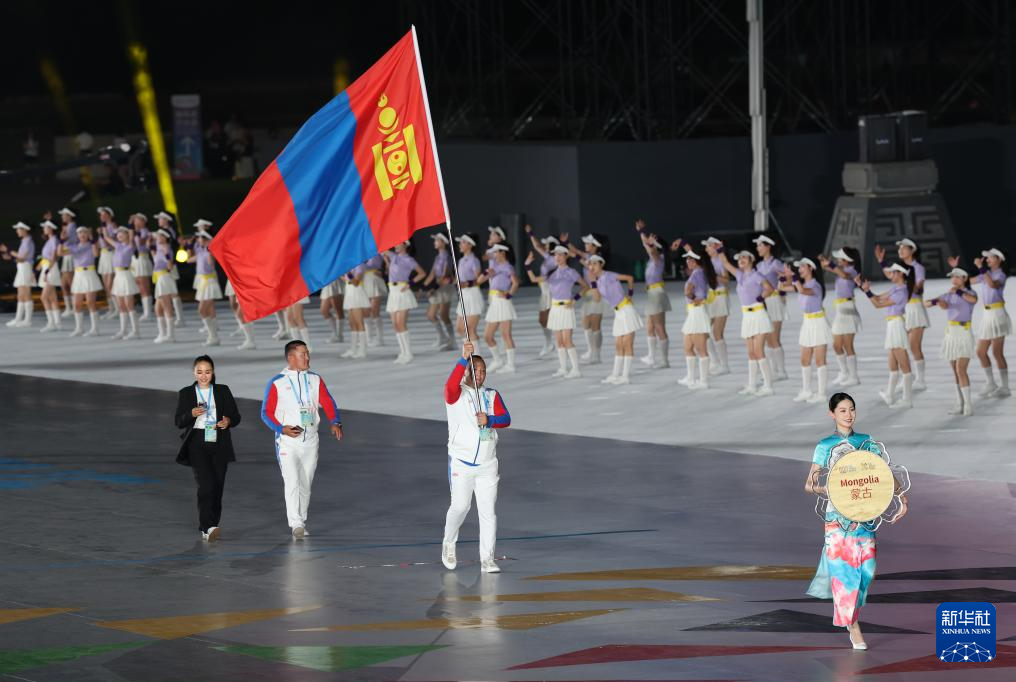8月7日,蒙古国体育代表团在开幕式上入场。