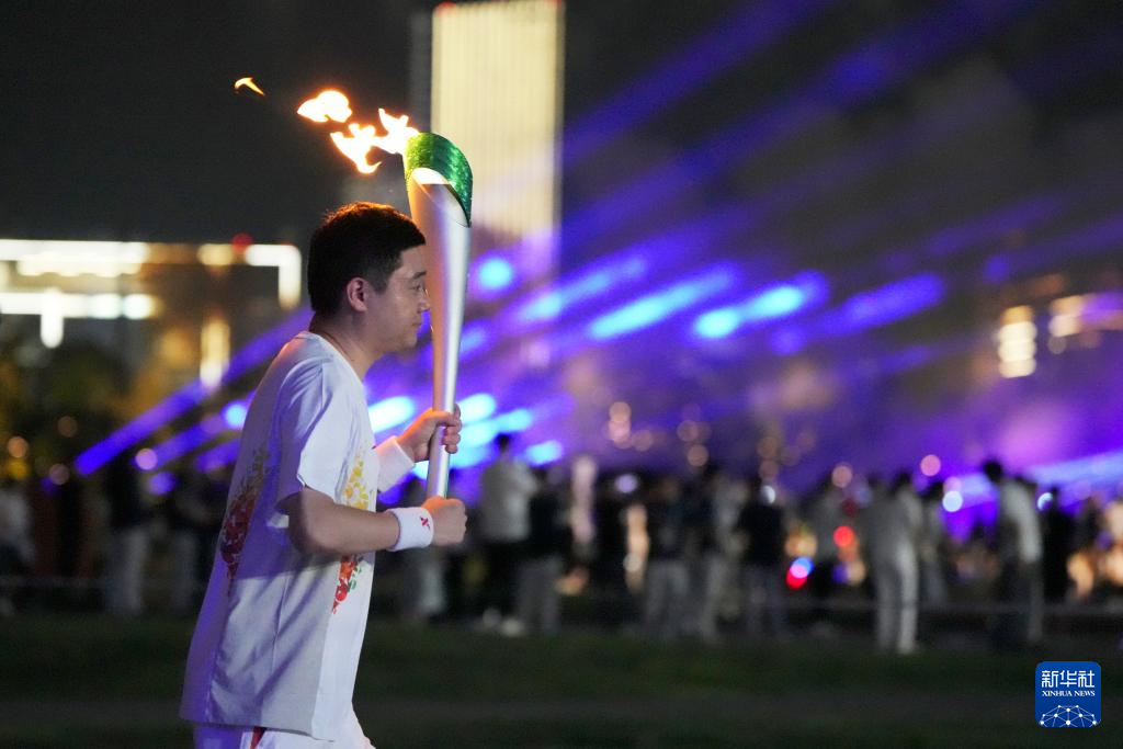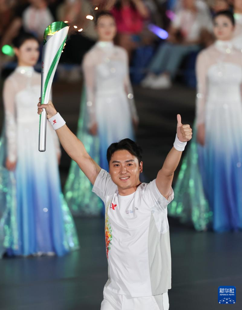 8月7日,火炬手董栋在开幕式上传递火炬。