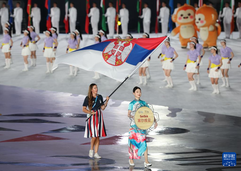 8月7日,塞尔维亚体育代表团在开幕式上入场。