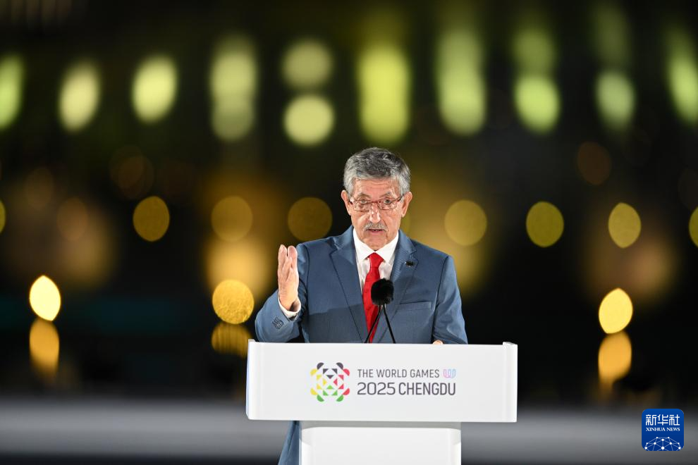 8月7日,国际世界运动会协会主席何塞·佩鲁雷纳在开幕式上致辞。
