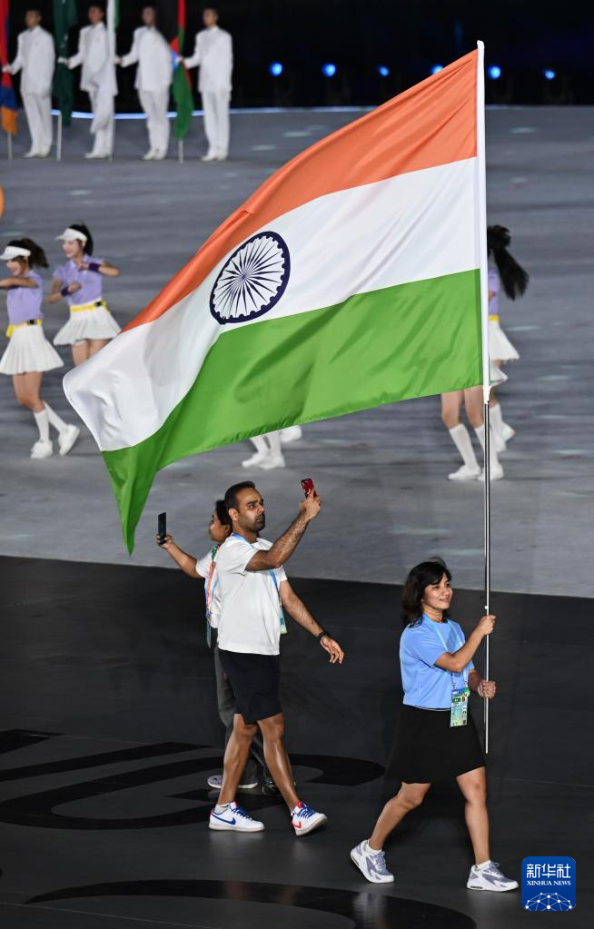 8月7日,印度体育代表团在开幕式上入场。