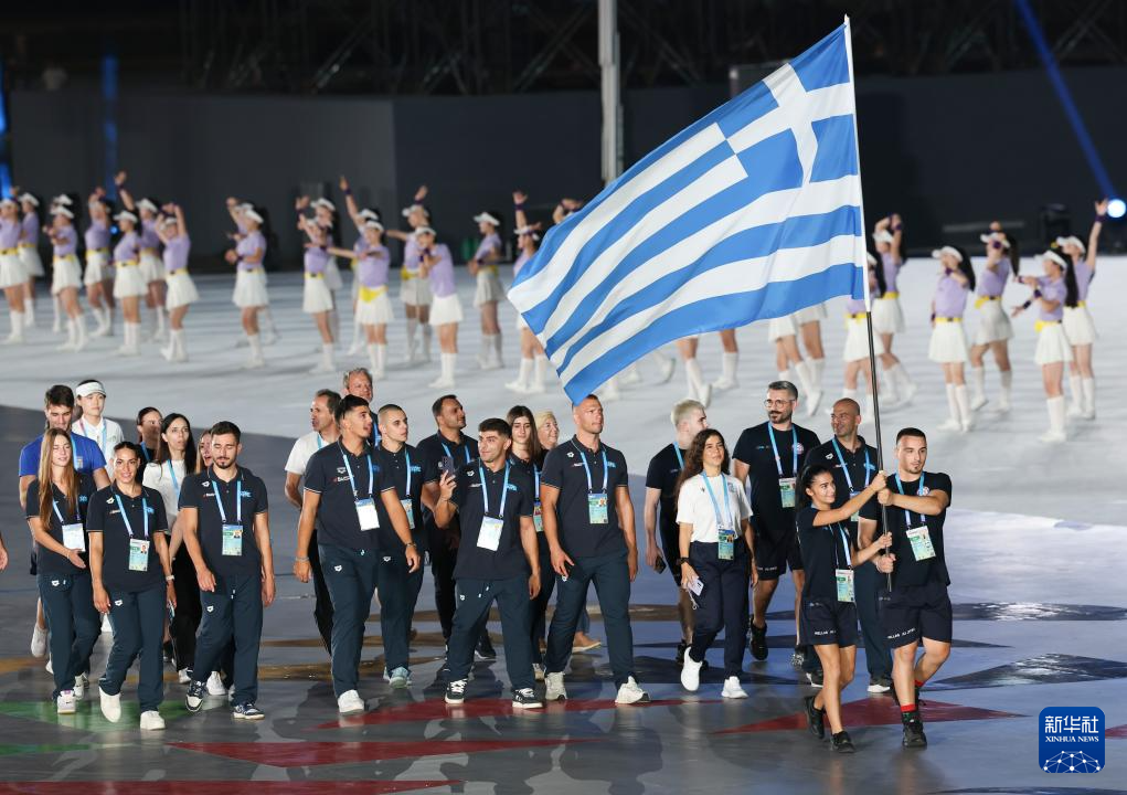 8月7日,希腊体育代表团在开幕式上入场。