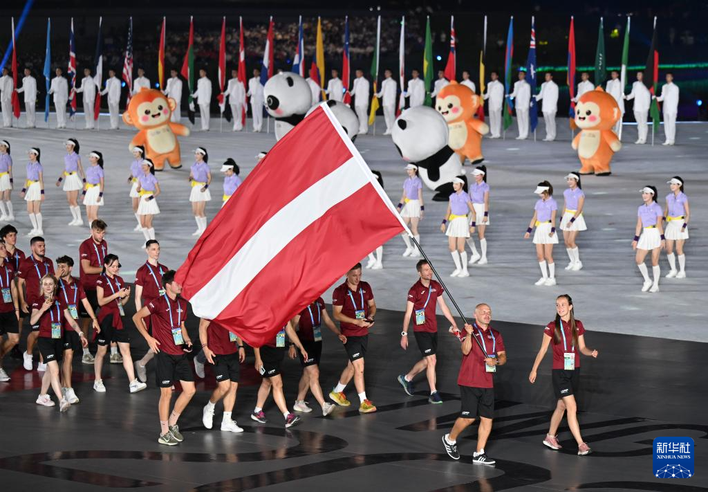 8月7日,拉脱维亚体育代表团在开幕式上入场。