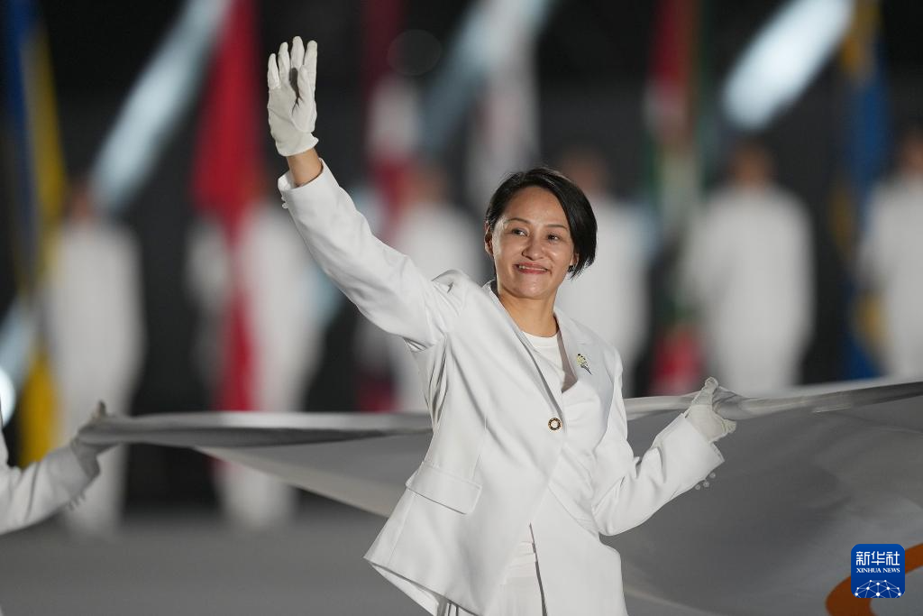 8月7日,国际奥林匹克委员会会旗执旗手高敏在开幕式上。