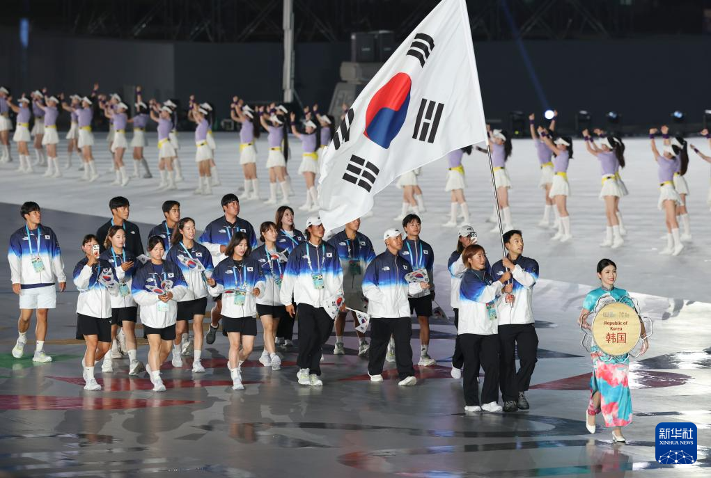 8月7日,韩国体育代表团在开幕式上入场。