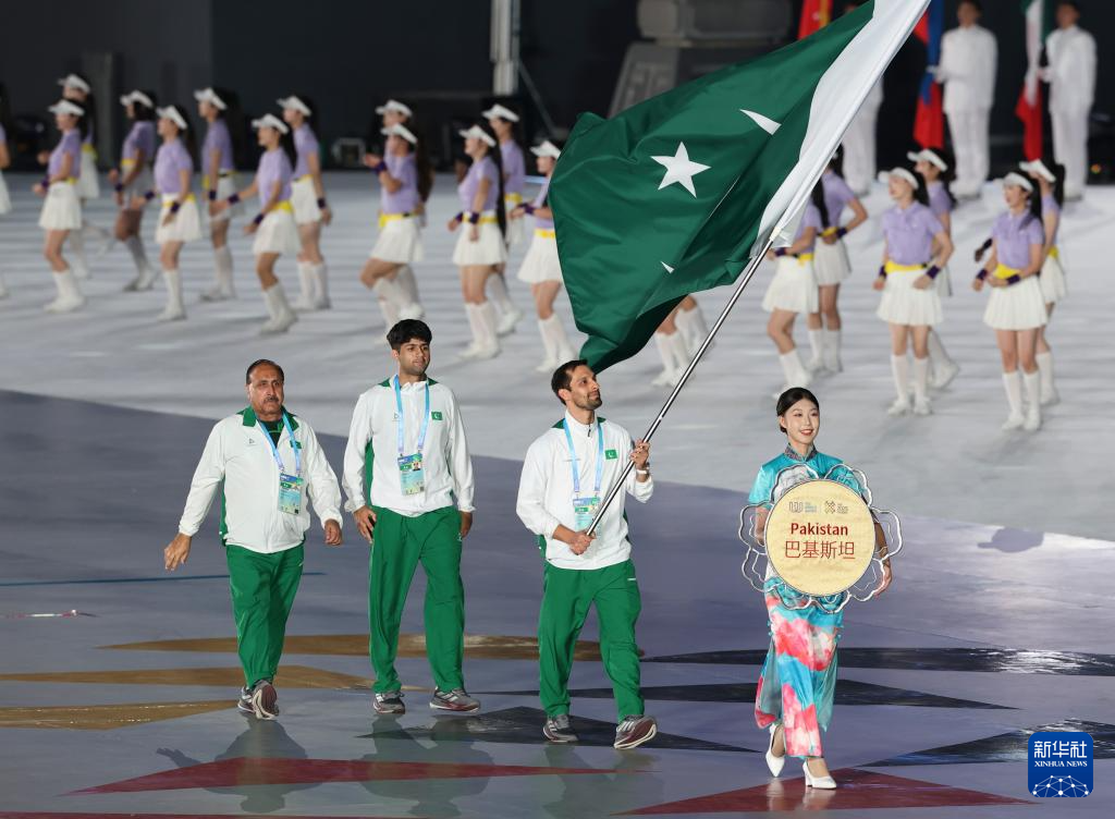 8月7日,巴基斯坦体育代表团在开幕式上入场。
