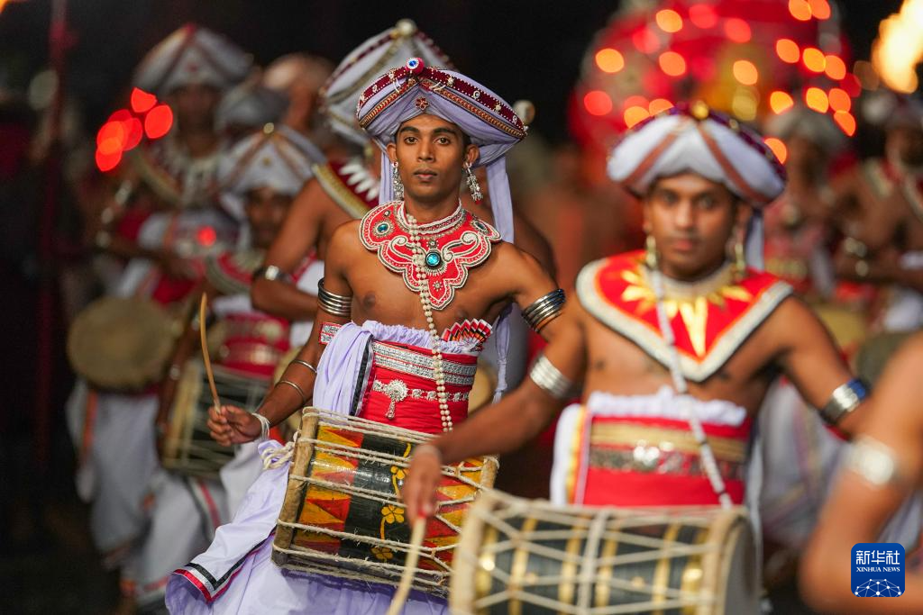 8月4日,在斯里兰卡中部城市康提,演员在佛牙节游行活动上表演。