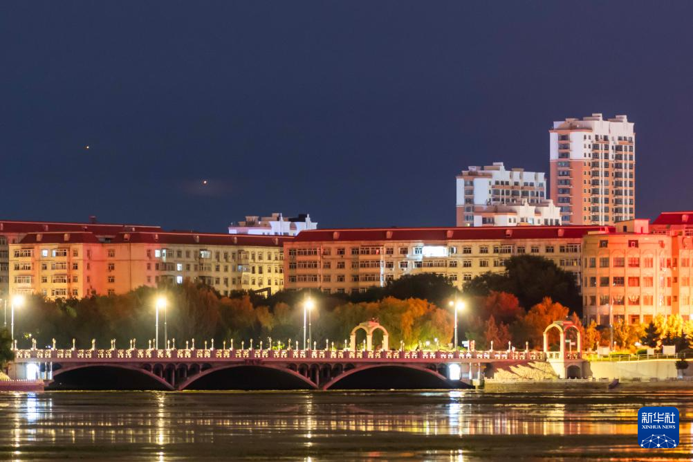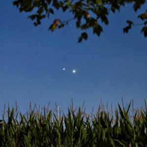 8月12日凌晨在黑龙江省齐齐哈尔市劳动湖景区拍摄的金星、木星极近景象。