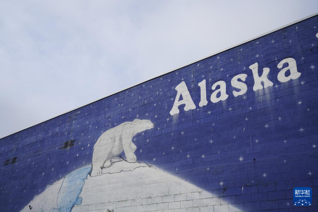 这是8月14日在美国阿拉斯加州安克雷奇市中心拍摄的壁画。