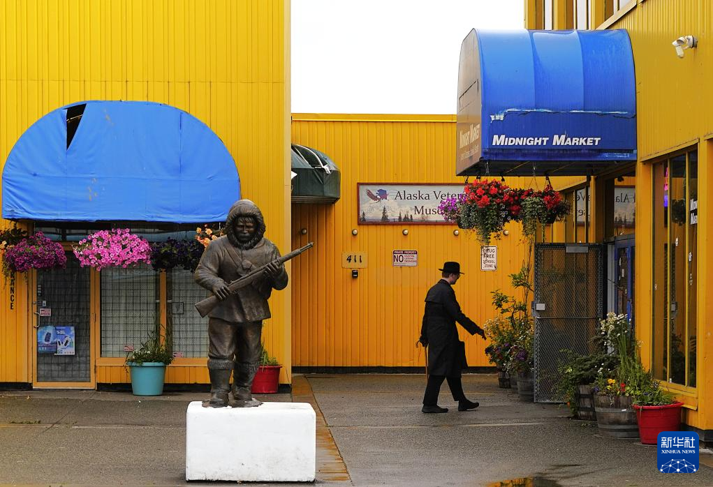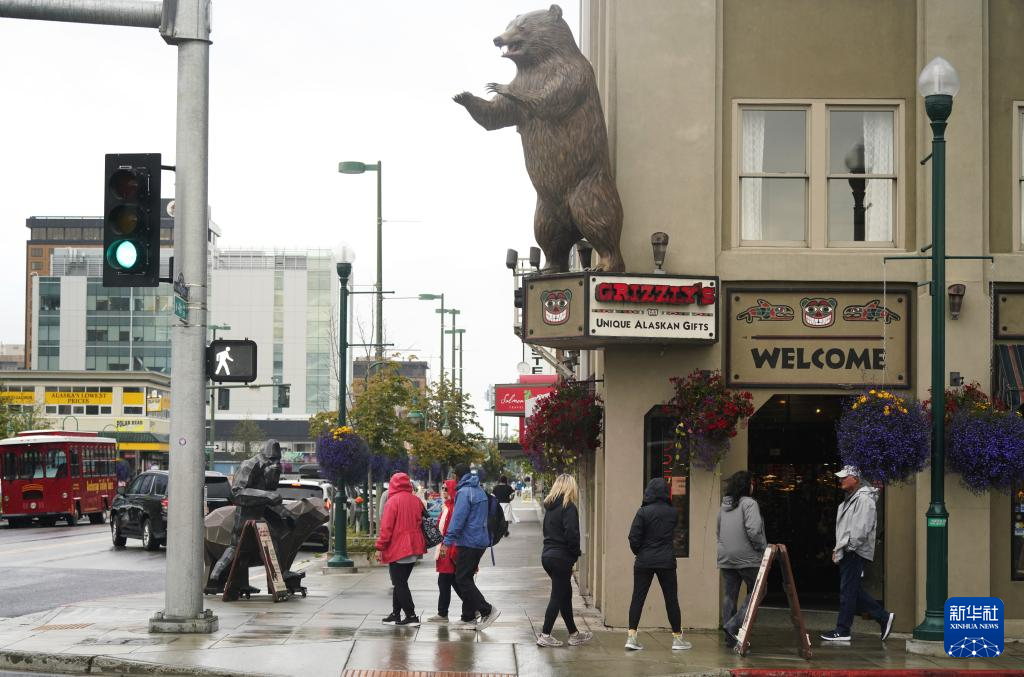 8月14日,人们走进美国阿拉斯加州安克雷奇的游客中心。