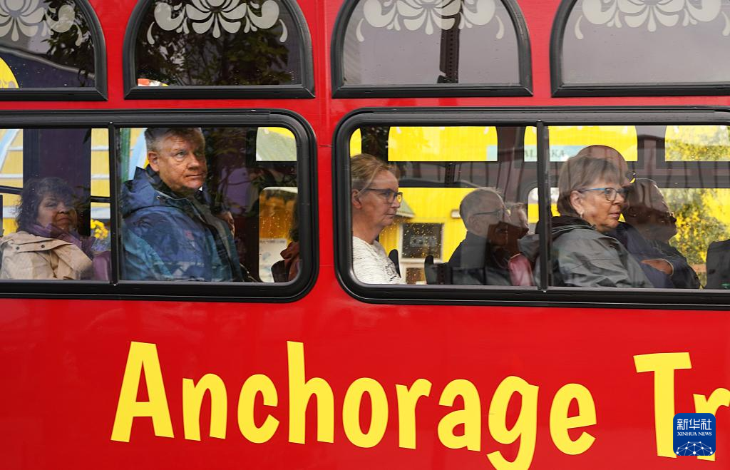 8月14日,人们乘坐观光车在美国阿拉斯加州安克雷奇游览。