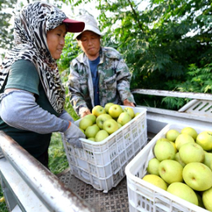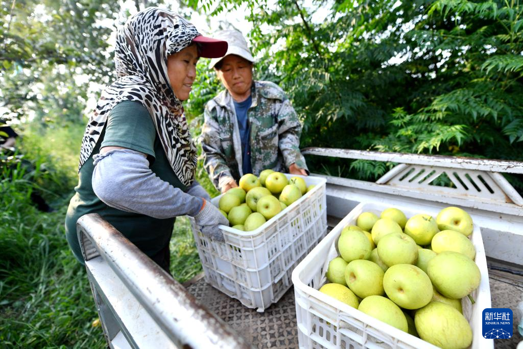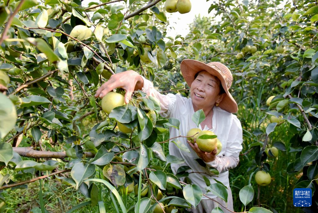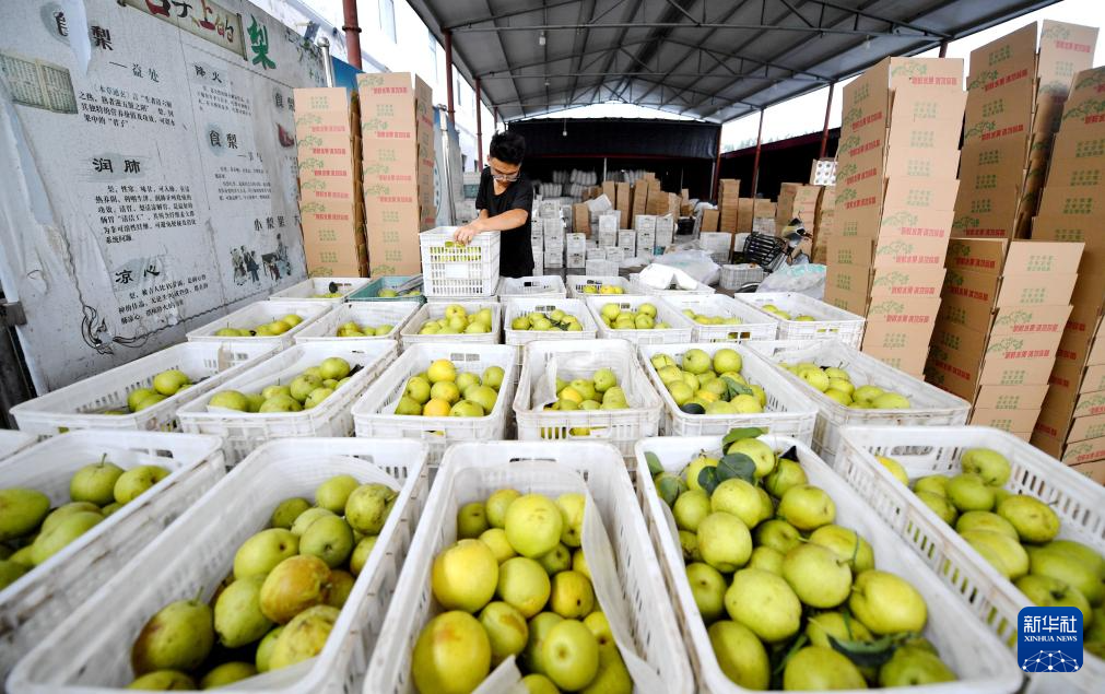 近日,河北省邢台市威县10万亩梨果陆续成熟,果农们忙着采摘、分拣、销售。