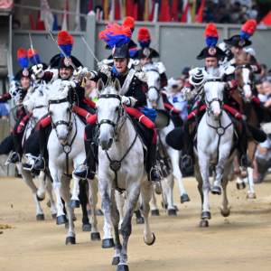 8月16日,在意大利锡耶纳,意大利宪兵在赛马节上表演。