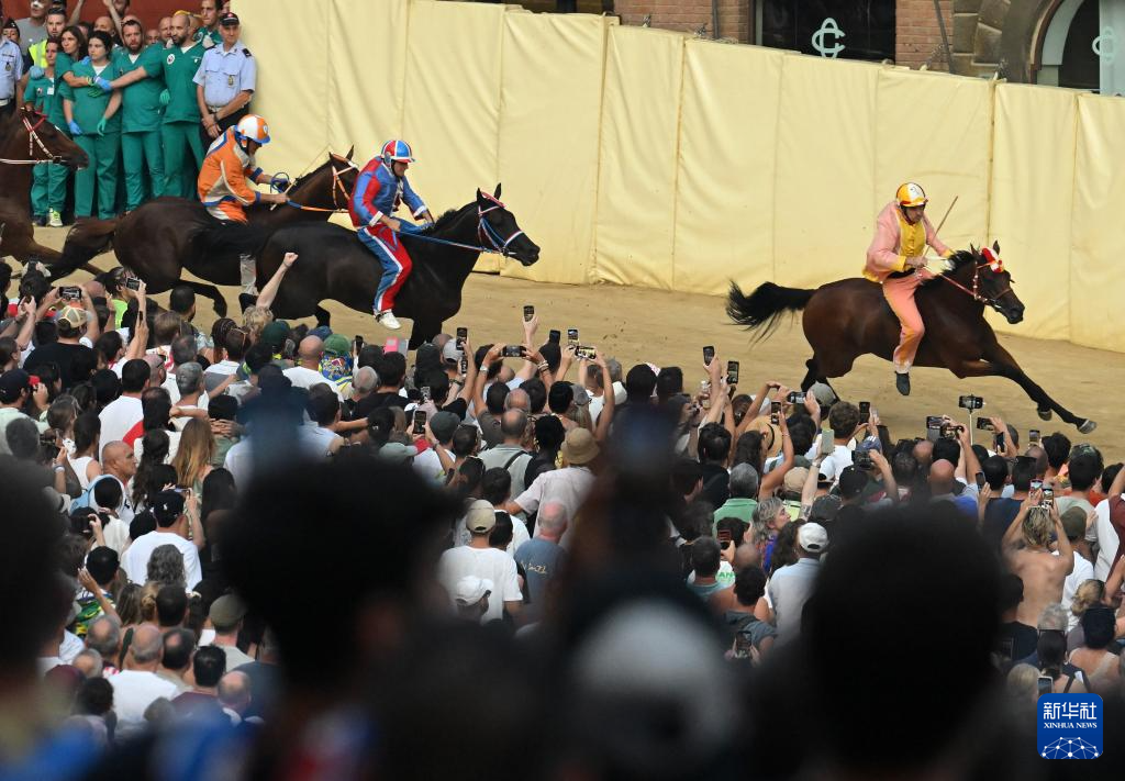 当日,锡耶纳赛马节在意大利托斯卡纳大区古城锡耶纳举行。锡耶纳赛马节是世界闻名的意大利传统民间活动,始于1656年,每年7月和8月举行。