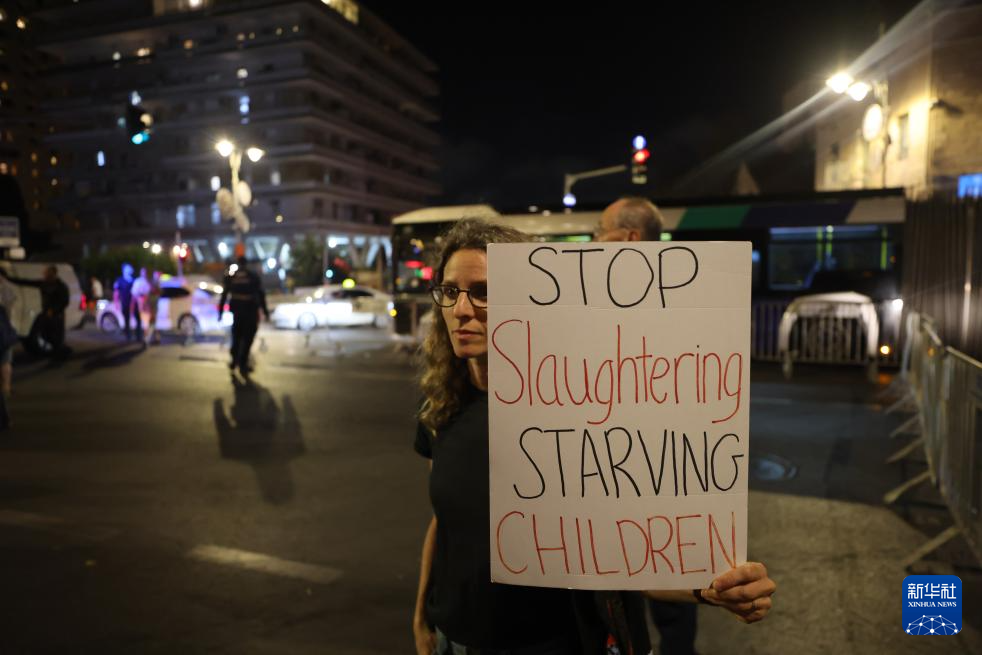 当晚,大批民众在耶路撒冷市区举行集会,抗议以军在加沙的“饥饿政策”,敦促以色列政府迅速结束加沙战争,与巴勒斯坦伊斯兰抵抗运动(哈马斯)达成停火。